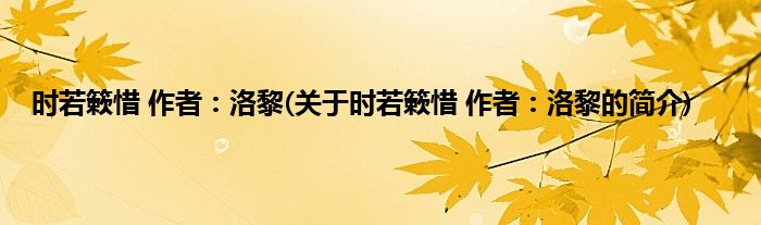 大家好,时若簌惜 作者:洛黎,关于时若簌惜 作者:洛黎的简介很多人还不知道,现在让我们一起来看看吧!