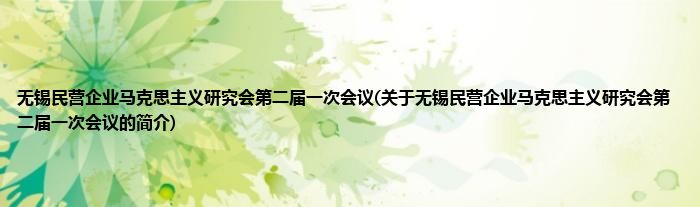 1、 《无锡民营企业马克思主义研究会第二届一次会议》是在无锡市召开的会议。