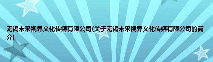 本文关于无锡未来视界文化传媒有限公司的简介就讲解完毕,希望对大家有所帮助。