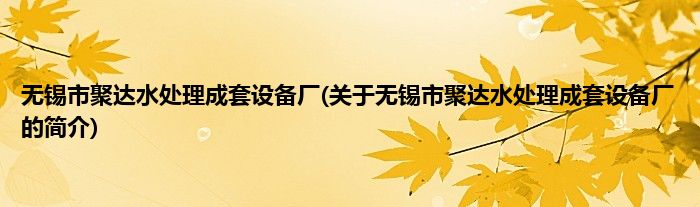 本文关于无锡市聚达水处理成套设备厂的简介就讲解完毕,希望对大家有所帮助。