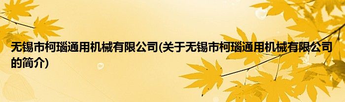 无锡市柯瑙通用机械有限公司(关于无锡市柯瑙通用机械有限公司的简介)