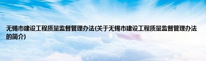 无锡市建设工程质量监督管理办法(关于无锡市建设工程质量监督管理办法的简介)