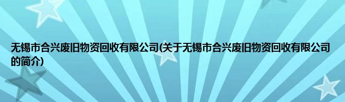 无锡市合兴废旧物资回收有限公司(关于无锡市合兴废旧物资回收有限公司的简介)