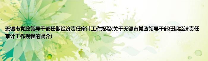 大家好,无锡市党政领导干部任期经济责任审计工作规程,关于无锡市党政领导干部任期经济责任审计工作规程的简介很多人还不知道,现在让我们一起来看看吧!