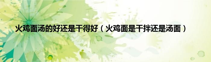 干混的火鸡面和火鸡面味道更好。火鸡面是辣干拌面,当然也有汤面的味道。而火鸡汤面太辣,不利于咽喉和胃黏膜的健康。现在很少有人吃火鸡汤面了。有汤的火鸡面没有干混火鸡面好吃。