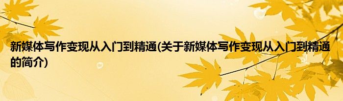 新媒体写作变现从入门到精通(关于新媒体写作变现从入门到精通的简介)