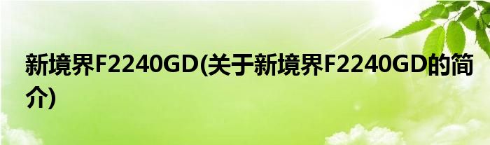 本文关于新境界F2240GD的简介就讲解完毕,希望对大家有所帮助。