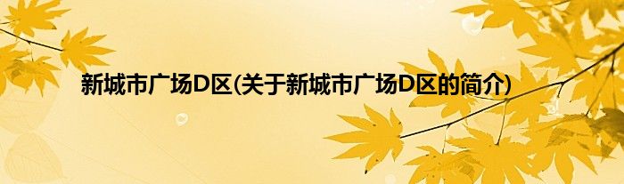 大家好,新城市广场D区,关于新城市广场D区的简介很多人还不知道,现在让我们一起来看看吧!