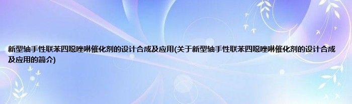 本文关于新型轴手性联苯四噁唑啉催化剂的设计合成及应用的简介就讲解完毕,希望对大家有所帮助。