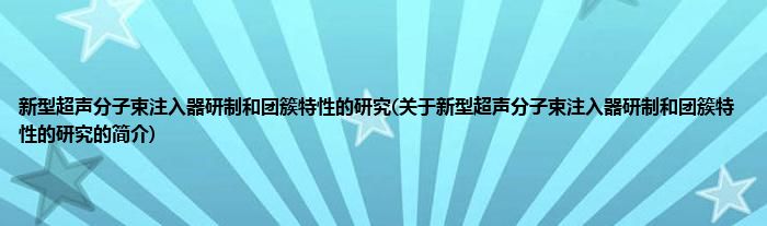 大家好,新型超声分子束注入器研制和团簇特性的研究,关于新型超声分子束注入器研制和团簇特性的研究的简介很多人还不知道,现在让我们一起来看看吧!