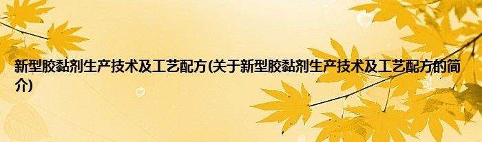 本文关于新型胶黏剂生产技术及工艺配方的简介就讲解完毕,希望对大家有所帮助。