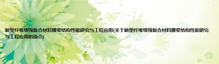 大家好,新型纤维增强复合材料腰梁结构性能研究与工程应用,关于新型纤维增强复合材料腰梁结构性能研究与工程应用的简介很多人还不知道,现在让我们一起来看看吧!
