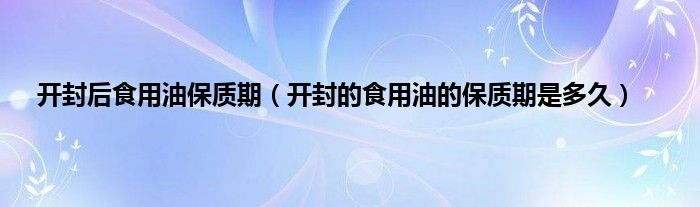 开封食用油的保质期一般为2-3个月。但需要在避光、干燥、阴凉、密闭的环境下保存3个月。没有氧化剂的食用油,开封后测了几个月都不能吃。如果开封后存放在潮湿的环境中,食用油中会产生细菌。