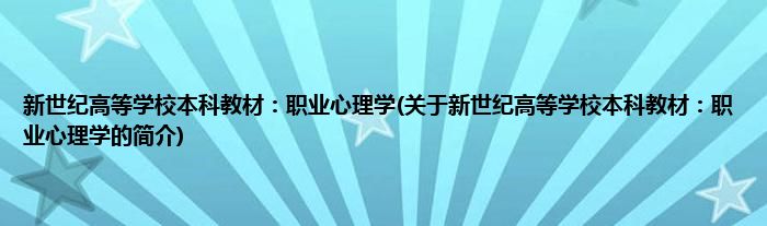 本文关于新世纪高等学校本科教材:职业心理学的简介就讲解完毕,希望对大家有所帮助。
