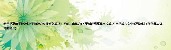 本文关于新世纪高等学校教材·学前教育专业系列教材:学前儿童体育的简介就讲解完毕,希望对大家有所帮助。