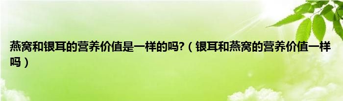 大家好,小科来为大家解答以上问题。燕窝和银耳的营养价值是一样的吗?,银耳和燕窝的营养价值一样吗很多人还不知道,现在让我们一起来看看吧!