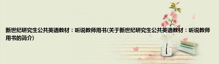 大家好,新世纪研究生公共英语教材:听说教师用书,关于新世纪研究生公共英语教材:听说教师用书的简介很多人还不知道,现在让我们一起来看看吧!