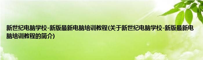 新世纪电脑学校-新版最新电脑培训教程(关于新世纪电脑学校-新版最新电脑培训教程的简介)