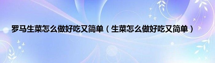 大家好,小科来为大家解答以上问题。罗马生菜怎么做好吃又简单,生菜怎么做好吃又简单很多人还不知道,现在让我们一起来看看吧!