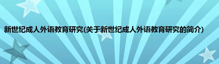大家好,新世纪成人外语教育研究,关于新世纪成人外语教育研究的简介很多人还不知道,现在让我们一起来看看吧!