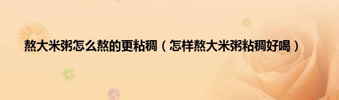 一、 怎样熬大米粥粘稠好喝