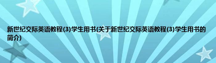本文关于新世纪交际英语教程(3)学生用书的简介就讲解完毕,希望对大家有所帮助。
