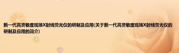 新一代高灵敏度现场X射线荧光仪的研制及应用(关于新一代高灵敏度现场X射线荧光仪的研制及应用的简介)