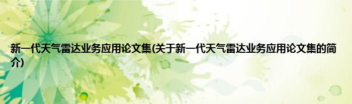 本文关于新一代天气雷达业务应用论文集的简介就讲解完毕,希望对大家有所帮助。