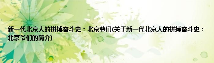 本文关于新一代北京人的拼搏奋斗史:北京爷们的简介就讲解完毕,希望对大家有所帮助。