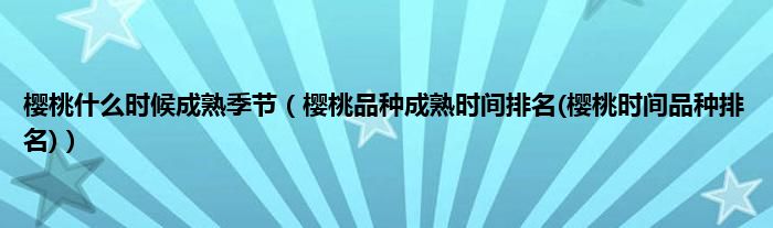 大家好,小科来为大家解答以上问题。樱桃什么时候成熟季节,樱桃品种成熟时间排名(樱桃时间品种排名)很多人还不知道,现在让我们一起来看看吧!