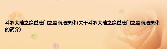 本文关于斗罗大陆之绝世唐门之霍雨浩黑化的简介就讲解完毕,希望对大家有所帮助。