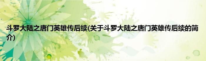本文关于斗罗大陆之唐门英雄传后续的简介就讲解完毕,希望对大家有所帮助。