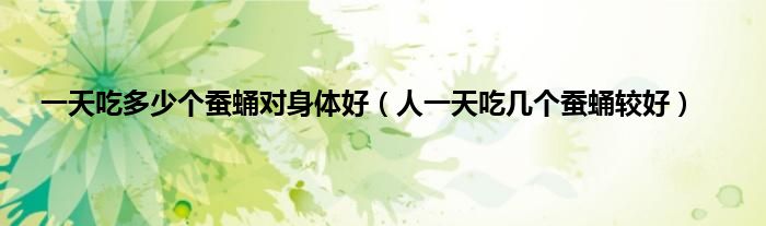正常人一天能吃10个蚕蛹,每天摄入的蚕蛹不要超过20个。有的蚕蛹有“微粒子”病。蚕蛹处理不当,过量食用蚕蛹可能导致中毒的风险,所以蚕蛹不宜天天食用。如果吃蚕蛹导致全身发痒,要及时停止进食,去医院就医。