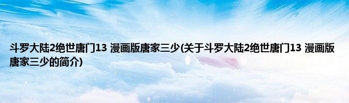 本文关于斗罗大陆2绝世唐门13 漫画版唐家三少的简介就讲解完毕,希望对大家有所帮助。