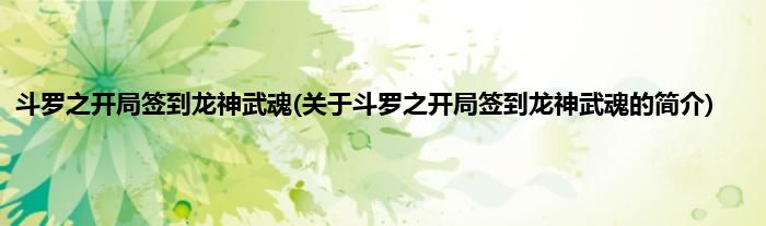 本文关于斗罗之开局签到龙神武魂的简介就讲解完毕,希望对大家有所帮助。