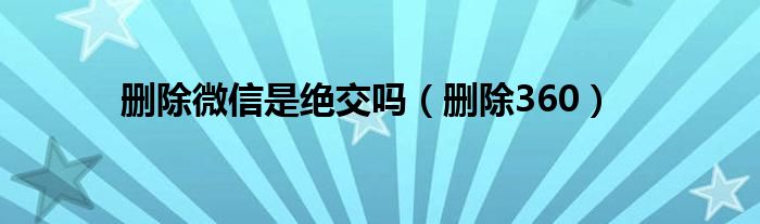 大家好,精选小编来为大家解答以上问题。删除微信是绝交吗,删除360很多人还不知道,现在让我们一起来看看吧!
