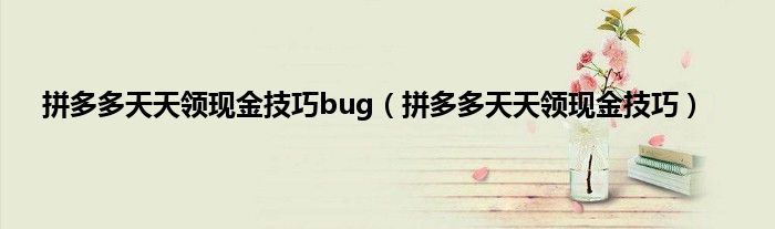 大家好,精选小编来为大家解答以上问题。拼多多天天领现金技巧bug,拼多多天天领现金技巧很多人还不知道,现在让我们一起来看看吧!