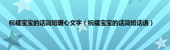 大家好,小常来为大家解答以上问题。祝福宝宝的话简短暖心文字,祝福宝宝的话简短话语很多人还不知道,现在让我们一起来看看吧!