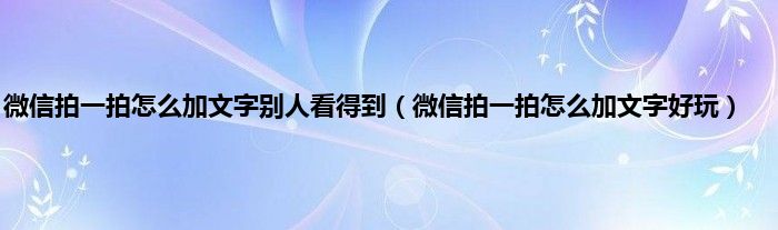 大家好,小常来为大家解答以上问题。微信拍一拍怎么加文字别人看得到,微信拍一拍怎么加文字好玩很多人还不知道,现在让我们一起来看看吧!