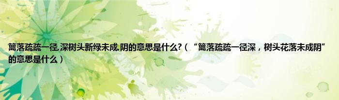 大家好,小常来为大家解答以上问题。篱落疏疏一径,深树头新绿未成,阴的意思是什么?,“篱落疏疏一径深,树头花落未成阴”的意思是什么很多人还不知道,现在让我们一起来看看吧!