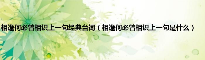 大家好,小常来为大家解答以上问题。相逢何必曾相识上一句经典台词,相逢何必曾相识上一句是什么很多人还不知道,现在让我们一起来看看吧!