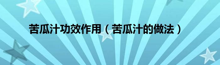 大家好,小常来为大家解答以上问题。苦瓜汁功效作用,苦瓜汁的做法很多人还不知道,现在让我们一起来看看吧!