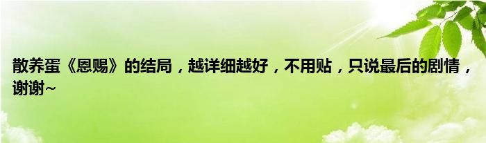 大家好,小常来为大家解答以上问题。散养蛋《恩赐》的结局,越详细越好,不用贴,只说最后的剧情,谢谢~很多人还不知道,现在让我们一起来看看吧!