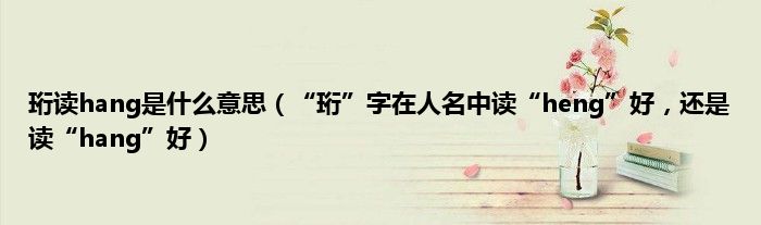 珩读hang是什么意思(“珩”字在人名中读“heng”好,还是读“hang”好)