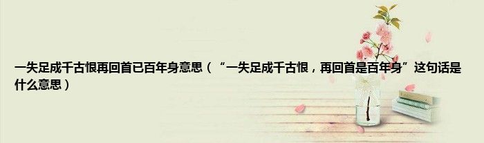 “一失足成千古恨,再回首是百年身。”字面意思为一个人只要做错一件最重要的关键,就会造成不可弥补的遗憾,即使重新来过,许多时机也无法追回。