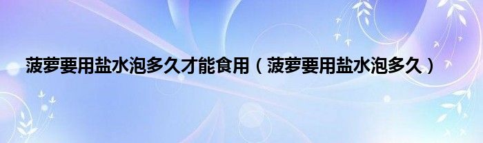 大家好,小科来为大家解答以上问题。菠萝要用盐水泡多久才能食用,菠萝要用盐水泡多久很多人还不知道,现在让我们一起来看看吧!