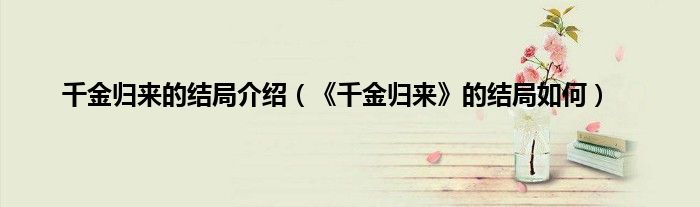 大家好,小常来为大家解答以上问题。千金归来的结局介绍,《千金归来》的结局如何很多人还不知道,现在让我们一起来看看吧!