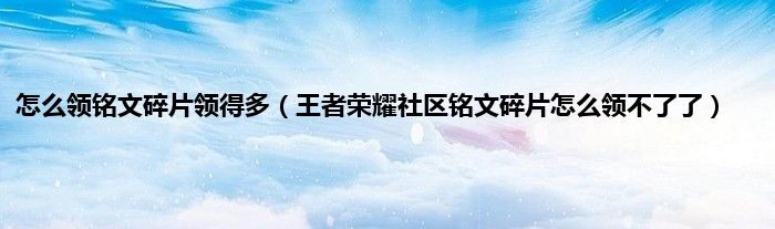大家好,小常来为大家解答以上问题。怎么领铭文碎片领得多,王者荣耀社区铭文碎片怎么领不了了很多人还不知道,现在让我们一起来看看吧!