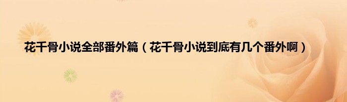 大家好,小常来为大家解答以上问题。花千骨小说全部番外篇,花千骨小说到底有几个番外啊很多人还不知道,现在让我们一起来看看吧!