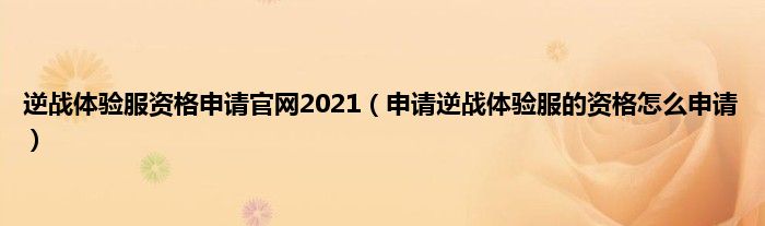 大家好,小常来为大家解答以上问题。逆战体验服资格申请官网2021,申请逆战体验服的资格怎么申请很多人还不知道,现在让我们一起来看看吧!
